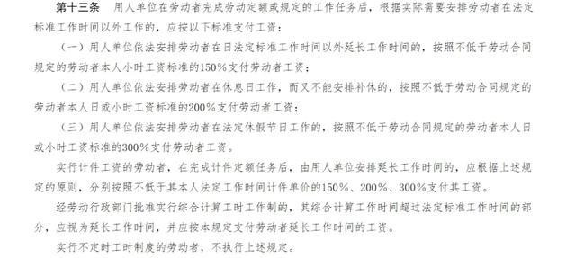 小编查阅了人社部《工资支付暂行规定》第十三条,其中明确规定:用人单位在劳动者完成劳动定额或规定的工作任务后,根据实际需要安排劳动者在法定标准工作时间以外工作的,应按以下标准支付工资: